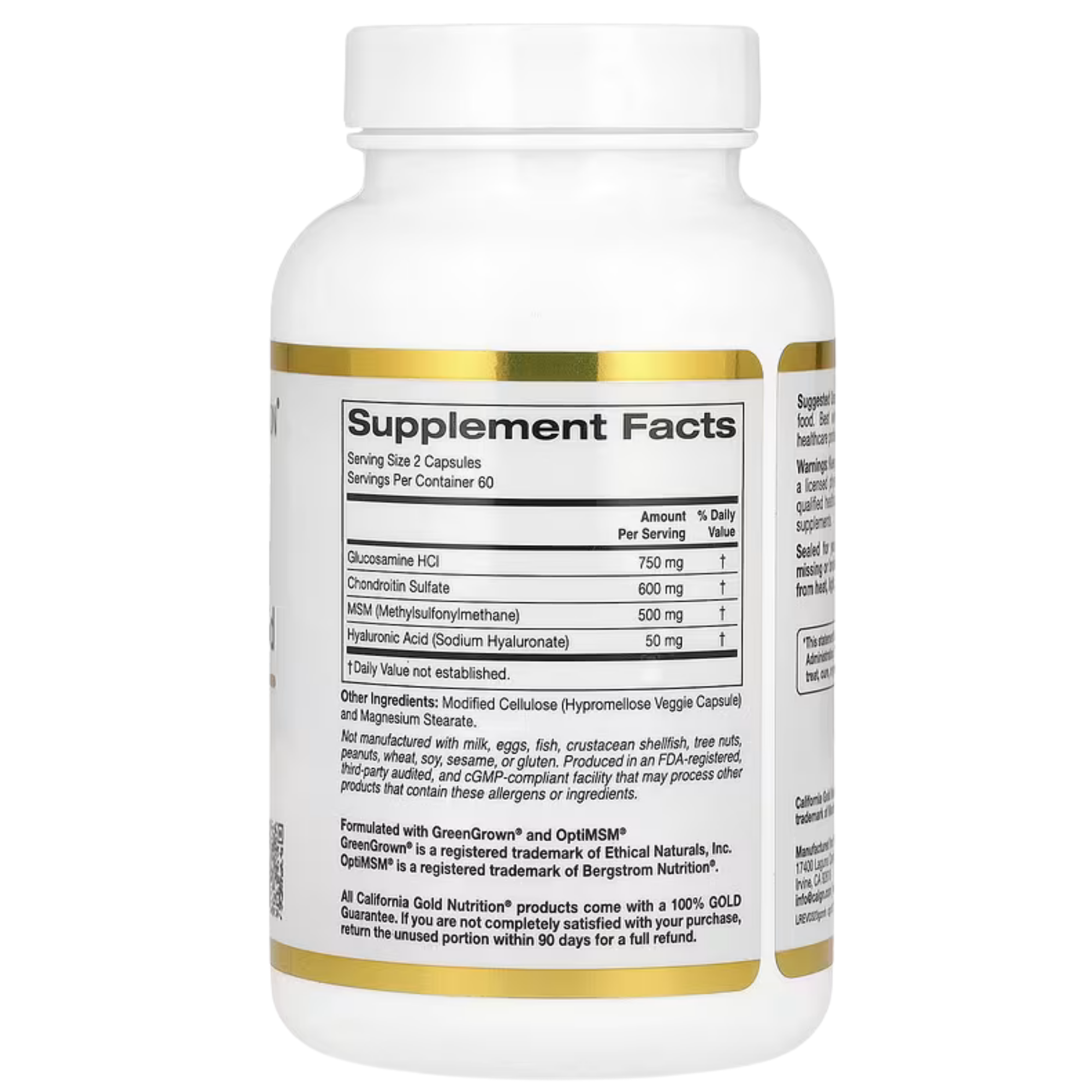 Promote joint comfort and mobility with Glucosamine, Chondroitin, MSM plus Hyaluronic Acid by California Gold Nutrition, now stocked at SUPPS247 online & instore!