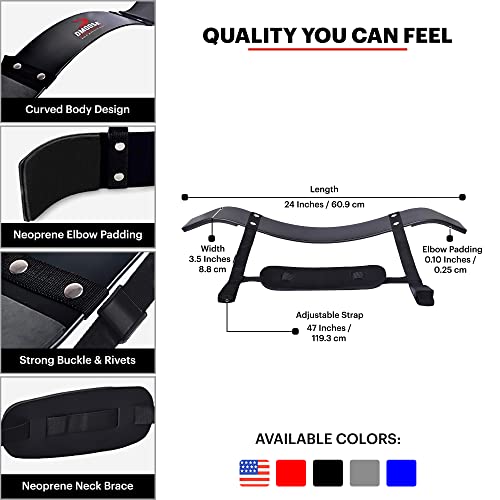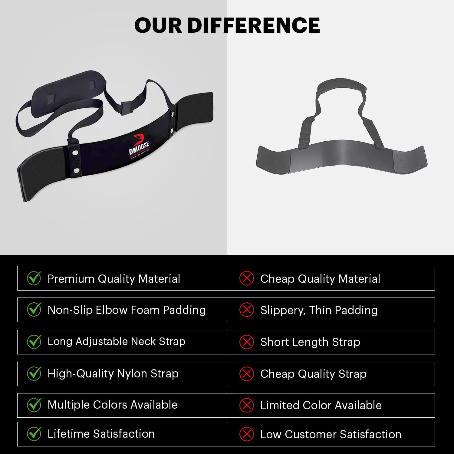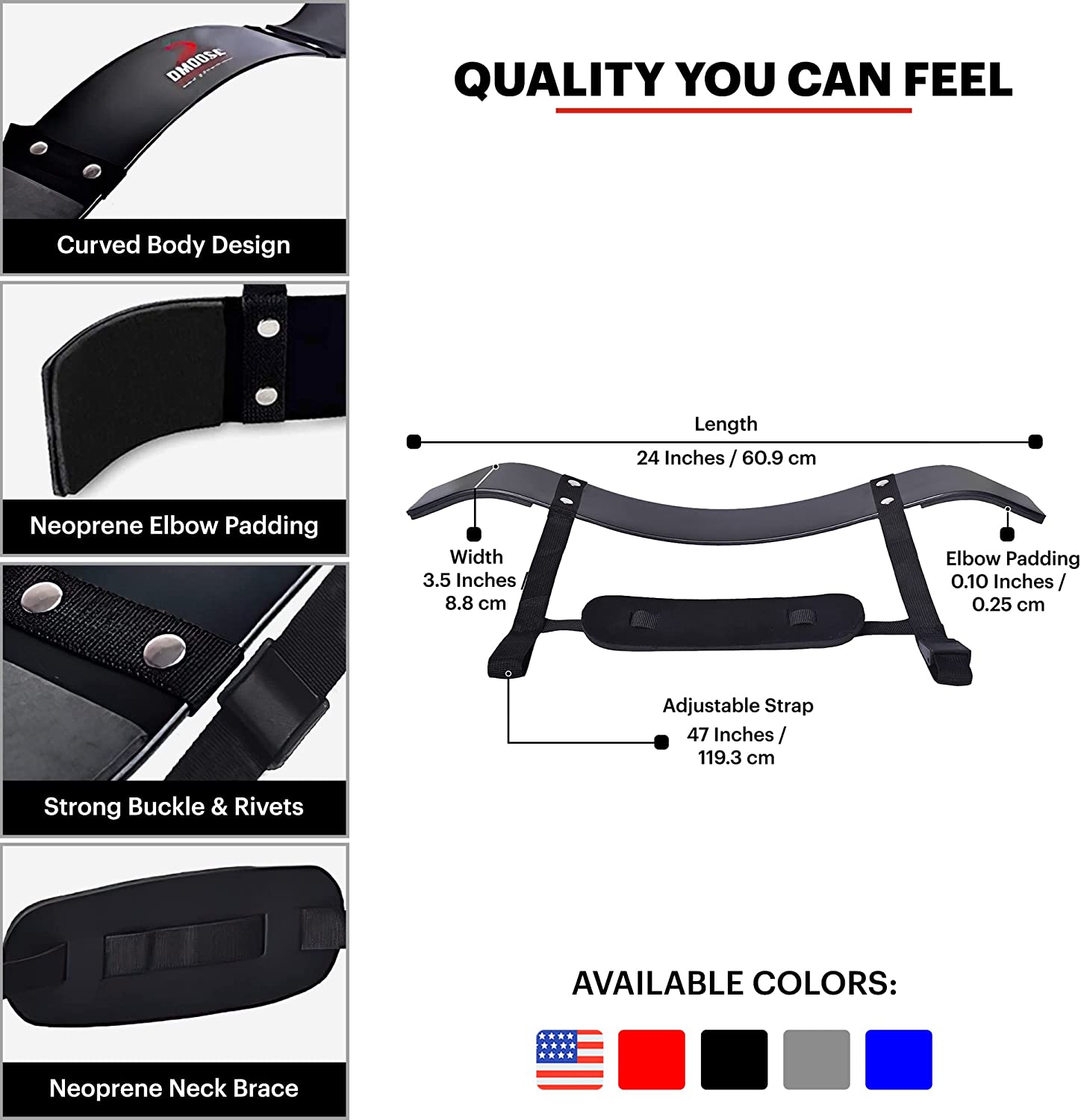 - CONTOURED, ADJUSTABLE DESIGN: Created by fitness experts our bicep curl bar features thick padded elbow pads and foam neck padding to improve safety and comfort, as well as a fully adjustable strap to support men or women lifters.
