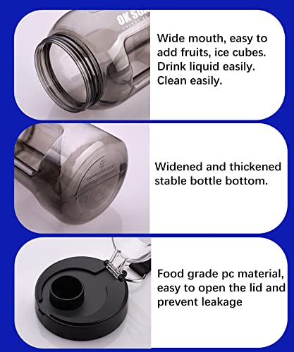 2500ml Large Capacity - You Can't Run Out Of Water With This Bottle: Oksoar 1-gallon bottle is large enough to keep you hydrated all day long without having to refill your bottle multiple times throughout the day, they are durable, light and portable. Drink all the water you need and forget about refills: this daily water bottle is perfect for an on-the-go lifestyle!
